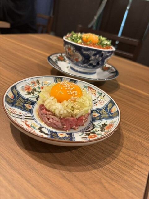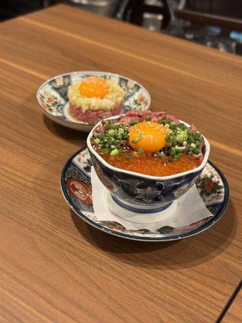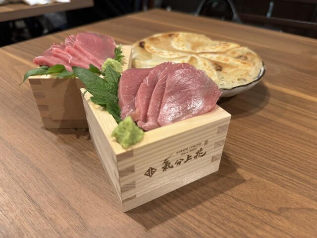 どれも美味しかったのですが 絶対食べなきゃ勿体無いのが 看板メニューの「レバテキ」 一口で感動するし 思い出しただけでまた食べたい、、 ユッケ丼もお肉が美味しくて 大好きないくらと合わさって最高でした… お刺身が枡に入ってるのもかわいい。 枡を見ると日本酒飲まなきゃと思って つい日本酒も頼んでしまいました。 お料理に合わせて日本酒を選んでもらって 目の前で継い... 詳細を見る