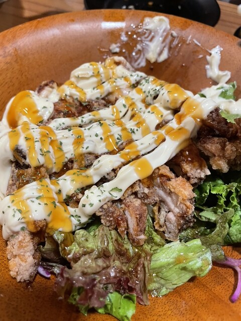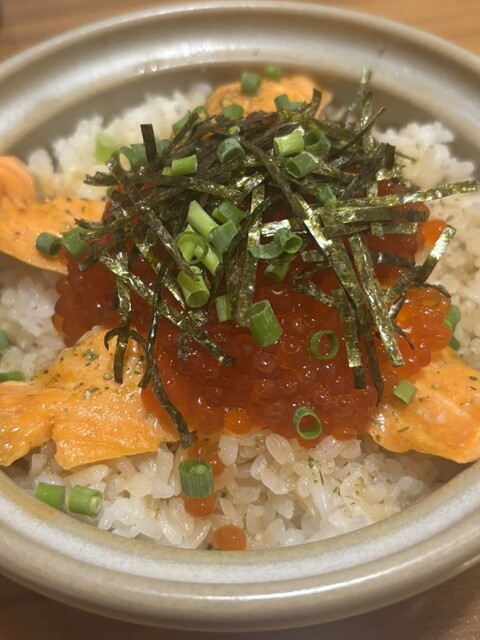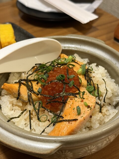 シーザーサラダ(¥1,078)/冷奴(¥418)/だし巻き玉子(¥748)/山賊焼(¥968)/鳥の唐揚げ(¥748)/ポテトフライ(¥638)/カプレーゼ(¥638)/鮭といくらの土鍋ご飯(¥1,080)を注...