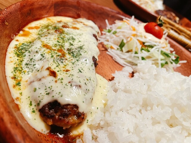 ■400gの特大ガリバーバーグに、とろ〜り濃厚チーズをたっぷり追加して、チーズ好きにはたまらない一皿に仕上がり。