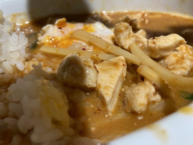 辛さが甘・普通・中辛・辛口と四段階選択可能で辛口に。ライス量は普通。