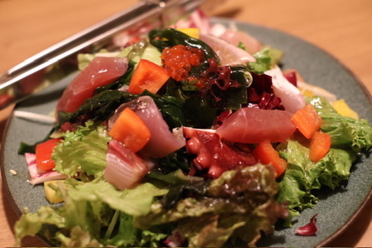 新鮮な魚介たっぷりの海鮮サラダ。見た目にもゴージャス。