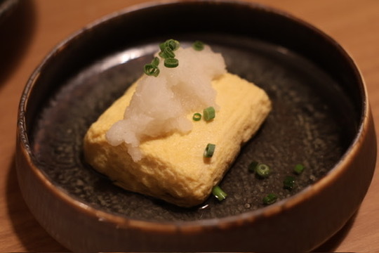 京出汁たっぷりつかった、だし巻き。味付けがとても上品で美味しい。