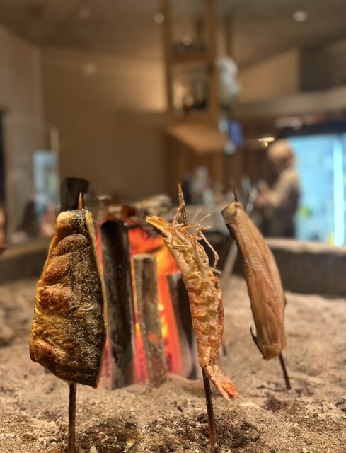 目の前には囲炉裏がありそこで魚などを原始焼きされてるのが見れて楽しめます