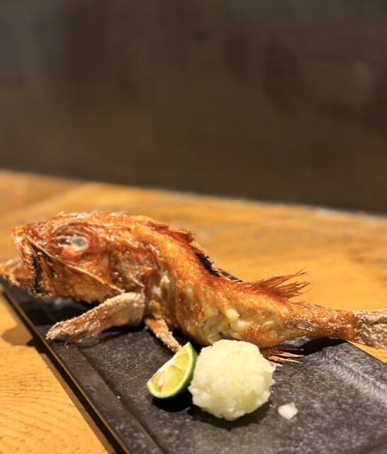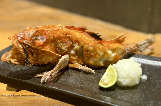 SNSで見かけてからずっと気になっていたお店! 新宿駅から徒歩5分程とアクセスも良く平日にも関わらず店内は満席! 女性グループやサラリーマンで賑わってました✨ 名物の原始焼きは焼く前に実際のお魚を目の前に持ってきてくださる演出がありライブ感たっぷり✨ 今回は単品で注文しました。 ⚫... 詳細を見る