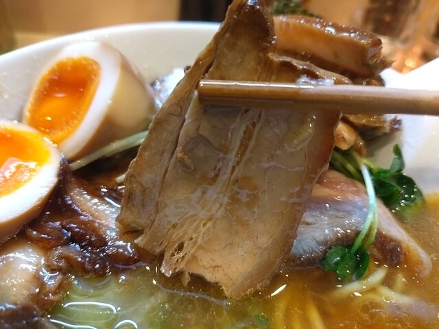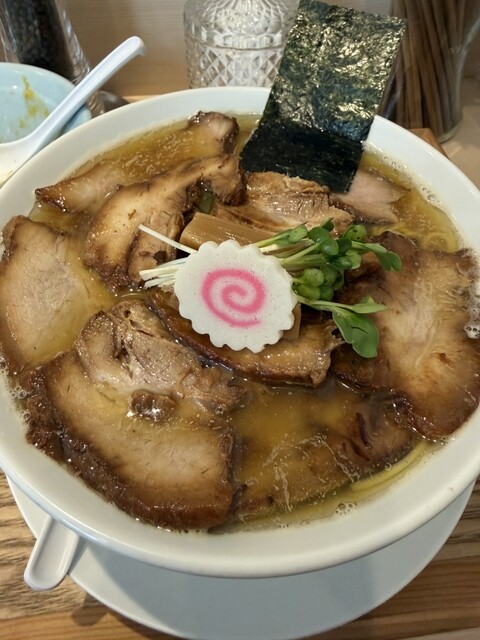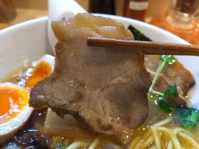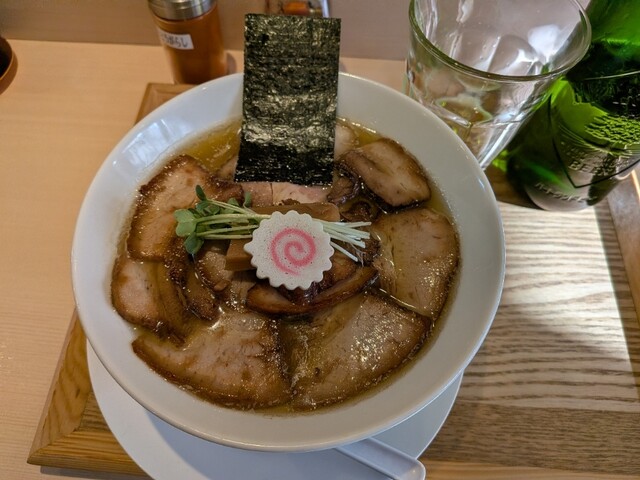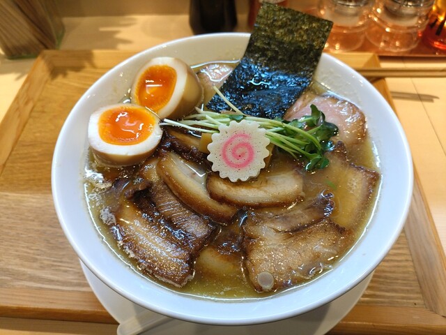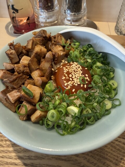 広くて迷宮のダンジョンのような新宿駅付近へ外出。何とか地上に出て一仕事を終えたところで立ち寄りました。いかにも西新宿といったポップな外観。ですが、ここはあのthere is ramen系譜。そういえば別なところでも系譜ができておりインターナショナルだった記憶が。こちらも店内はインターナショナルでした。場所柄その方が合っているかもですね。入口の券売機でチャーシュー&ミニ丼をポチッ。カウンターに着席す...