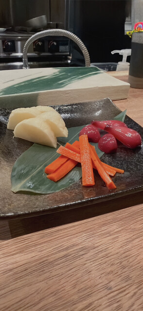 新宿三丁目駅からすぐの立地で、スタイリッシュな雰囲気が漂う素敵なお店です。カウンター席では炭火の香りを感じながら、職人技を目の前で楽しめ、スタッフの方々の細やかな対応も心地よく、ゆったりと過ごせました。 まずは契約農家直送の農園サラダ!無農薬ならではの自然な甘みが際立ちます。自家製バーニャカウ... 詳細を見る