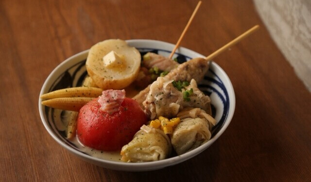 <特製のあごだしと鶏だしでじっくり煮込む創作おでん×目の前で楽しむ炉端焼き=新感覚和食店> |