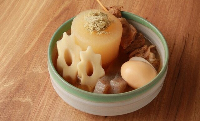 おでん屋たけしは2種類の出汁(あごだし、鶏だし)を使用した創作おでんと新鮮な魚を楽しむことができます。あごだしと鶏だしの2種類の出汁が使用されていて、食材の美味しさを生かした創作おでんが味わえます。新鮮な刺身は毎日何がどれくらい入荷できるか分からないので、日替わりです。