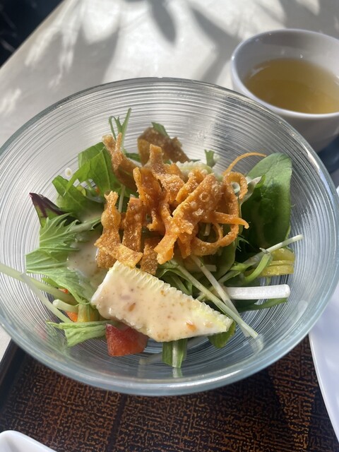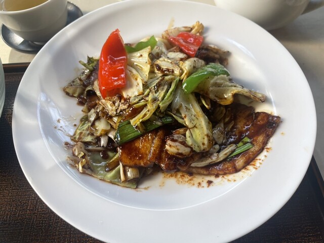 ランチに2回目の訪問、11時半前に着きコースの方の予約でいっぱいでしたが、30分だけならとギリギリテラス席に入れていただけました。前回海老チリ定食で美味しくて感動し、今回は回鍋肉定食をいただきました。...