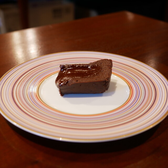 特撰ガトーショコラ(3,500円) 曜日や時間帯、状況によって買えない事があるとの情報を得ていたことから、事前に特撰ガトーショコラを一本予約して購入。 常温で2日、冷蔵庫で2週間のおいしさとのことで、まずはそのまま常温でいただくため、早速重厚な箱に入った品を開けると、ビターなチョコレートの香りが一面に広がり、一気に幸せに包まれる。 説明書きによると、常温はテリーヌショコラ、温めるとフォン... 詳細を見る