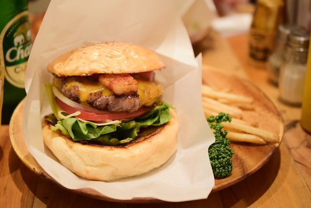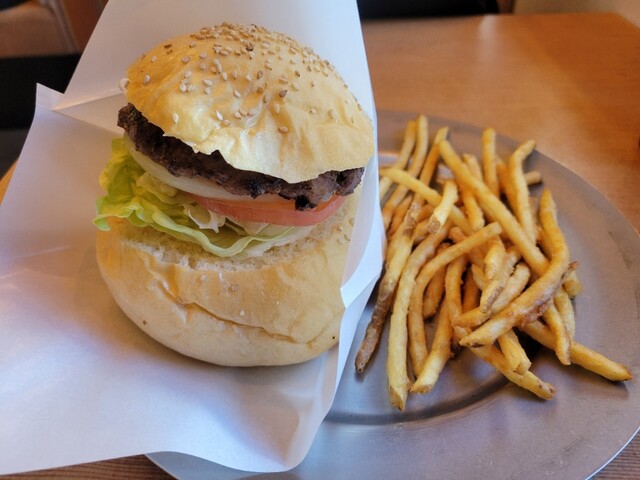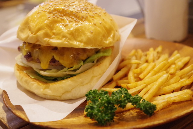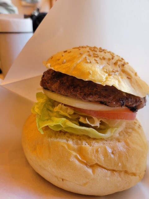 ホワイトバンズとクレピネット使用のステーキのようなパティのオリジナルハンバーガーショップ