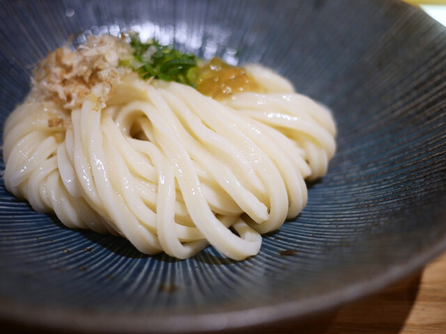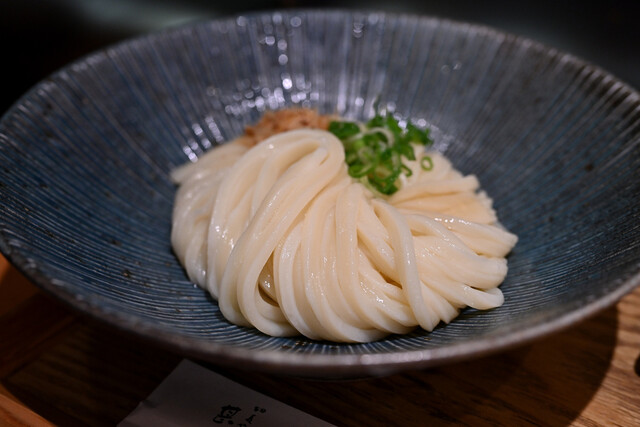 自家製麺で厳選した小麦粉や混ぜ合わせる塩水に至るまで徹底した温度管理をし、こしがあり噛んだ時の弾力と伸びのあるのど越しの良いうどんに仕上げています。出汁は北海道産の昆布や瀬戸内海産のいりこ更に数種類の節をブレンドし丁寧に抽出した最高の出汁。 また選りすぐりの日本酒も豊富で入手しにくい銘柄を呑めるので、夜は日本酒につまみ、〆のうどんと愉しみたい。店内はゆったりとした造りでくつろぎの時間を過ごせそうだ...。