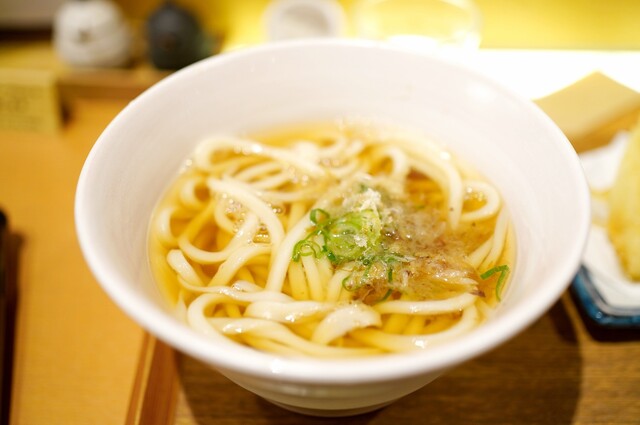 厳選素材の無添加の出汁。切置きなしの打ちたて、切りたて、揚げたてに拘ったうどんを愉しめる。
