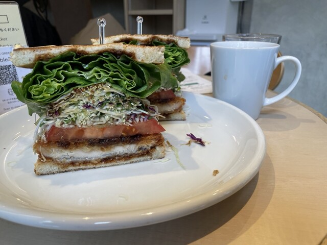 断面映えのサンドイッチブームを牽引したお店のひとつです。焼きたて、はさみたて、切りたてで提供されるので、たっぷり挟んである野菜もシャキシャキです。