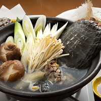 すっぽんを丸々一匹使った贅沢なコースでございます。 大分県産の生きたすっぽんを当日に捌くため、生き血・きも刺絶品です。コラーゲンたっぷりのスープで食べるなべはふぐにも負けない一品で、滋養強壮にもってこいのコースでございます。