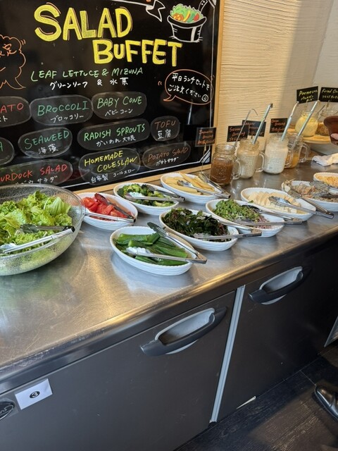 平日ランチは新鮮な野菜を自由に楽しめるサラダバーをご用意。
