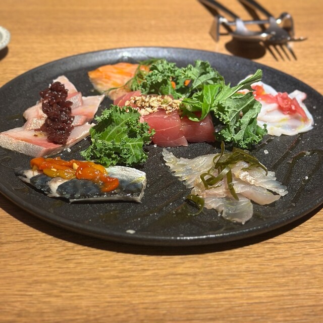 鮮魚にひと手間かけた「魚介のカルパッチョ5種盛り合わせ」