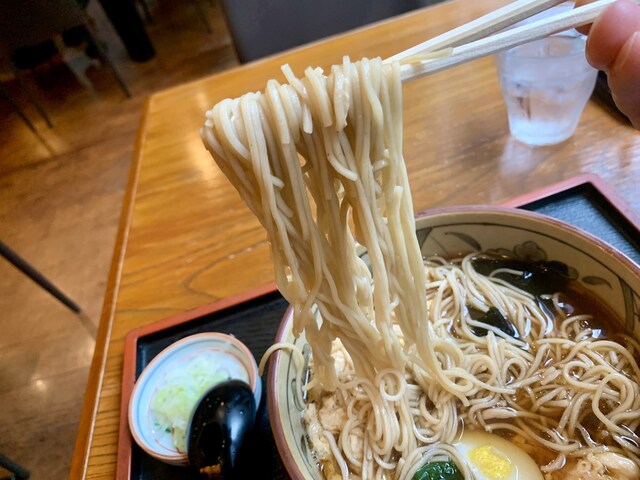 明治通りから一つ入った路地に、大通りの喧騒をしばし忘れさせてくれる空間がある。 店内はとても落ち着く雰囲気で、どの席に座っても飽きがきません。 箱庭と石畳は盆栽好きな店主のこだわりです。 蕎麦は北海道江丹別のそば粉を使用し、二八で打っています。 甘っ辛いつゆをからめたら、蕎麦の風味と甘みが口いっぱいに広がります。 是非そのおいしさを味わいにいらしてください。