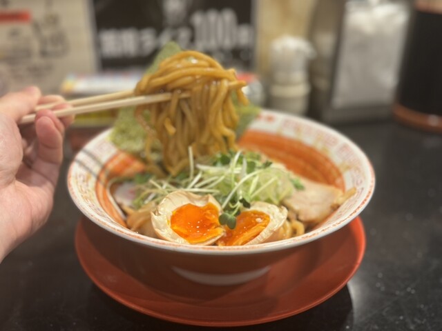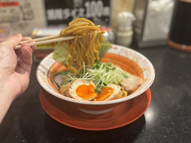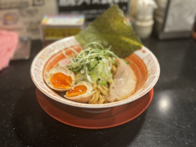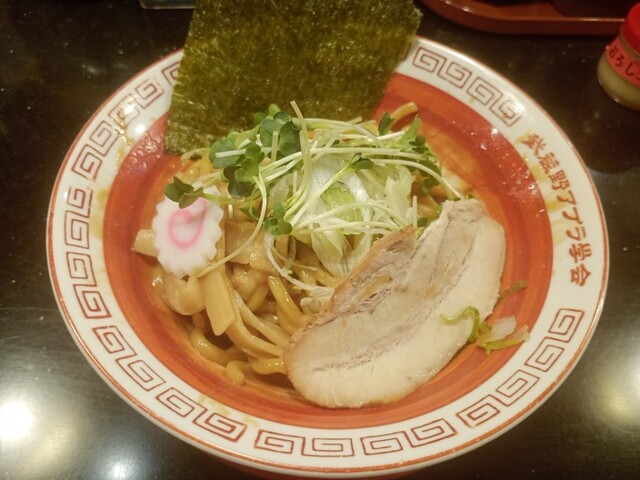 タレは交ぜた状態で提供され、魚粉と豚骨の濃厚さがクセになる美味しさです...