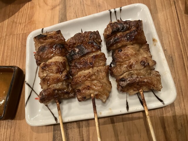 ヘルシーで食べやすい赤モツや白モツの串焼きが1本220円から楽しめて、低温調理されたお肉や大山鶏の焼き鳥など、バラエティ豊かなメニューが揃っています