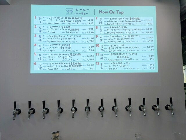 タップビールは台湾のクラフトビール中心に12種類有って、