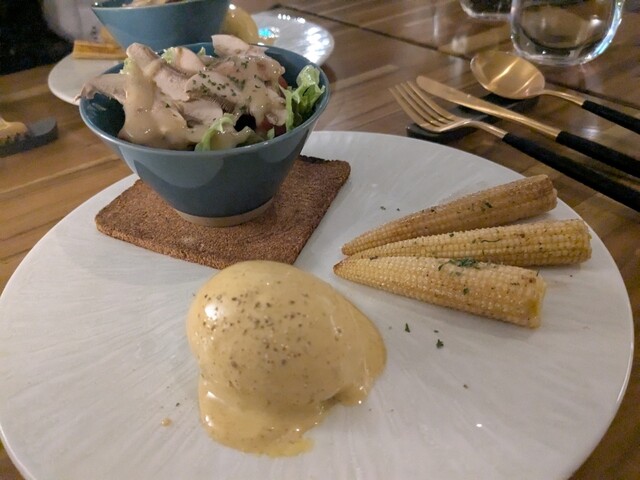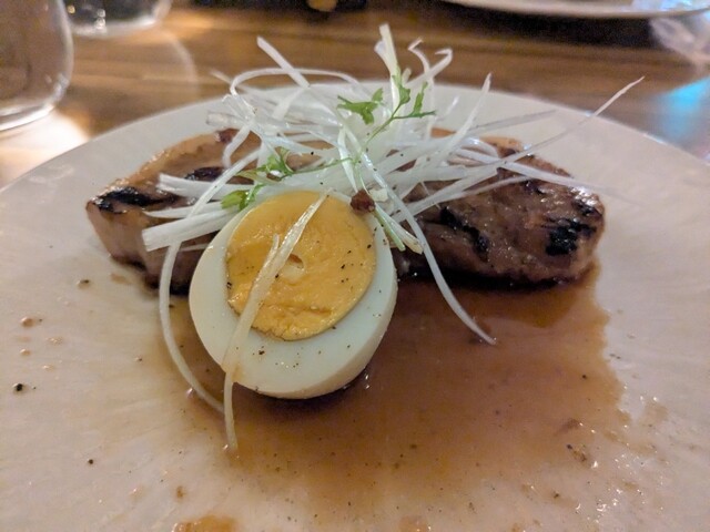 北参道駅徒歩5分 「Mine」 今回は席についてからの単品注文で。 頼んだ内容 ・アスパラガスのタルタル添え¥1000 ・まるでマルゲリータ¥900 ・おくらのポタージュ¥900 ・薬膳カレー(山椒キーマ)¥1300 ・ボンドガールステーキ¥2500 お通しに燻製ポテトチップス。 素敵な泡と。 アスパラガスのタルタル添えは ただのタルタルではない。 こちら... 詳細を見る