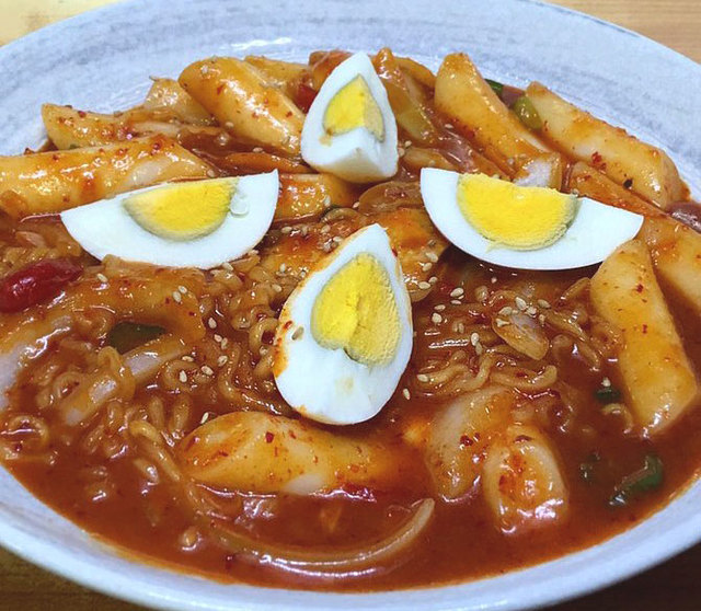 ラポッキ(韓国餅と麺の辛味炒め) (by お店)