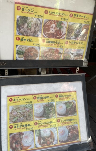 私はトムヤムクン米粉ラーメン¥1150、そしてベトナムフォー¥1000、鶏肉ガバオライス¥1100を注文...