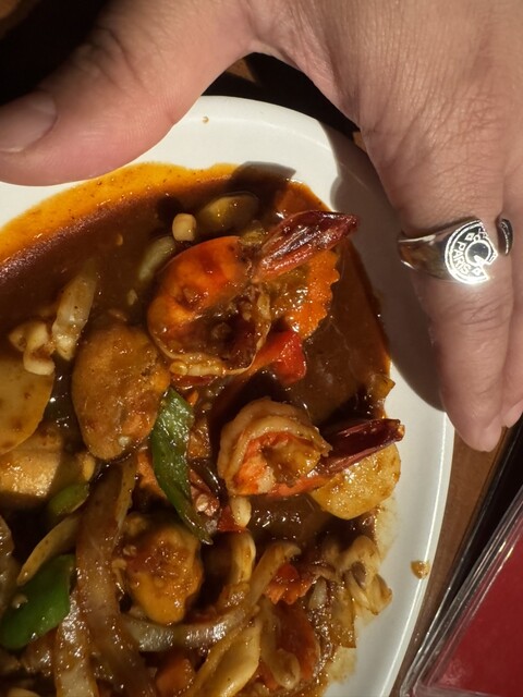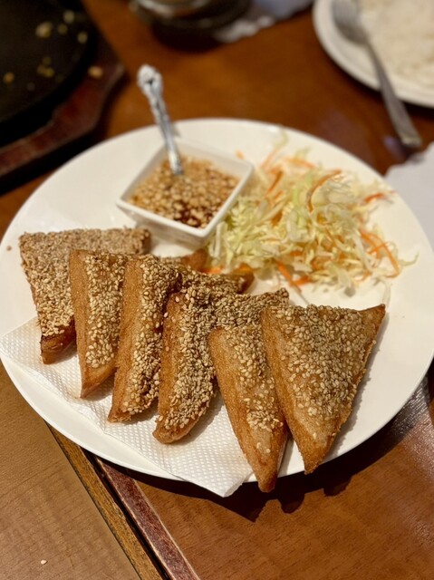 本場のタイナー味で、どれも全部おいしいエビ、トーストとエビのレッドカレー、うま