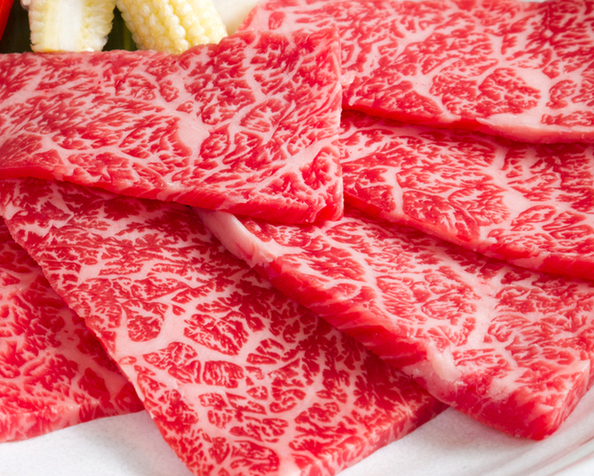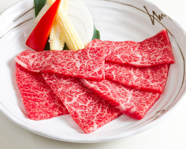 焼くお肉のメニューは、和牛ロース1,250円、和牛カルビ1,350円、タンとろ1,400円、中落ちカルビ1,450円、和...