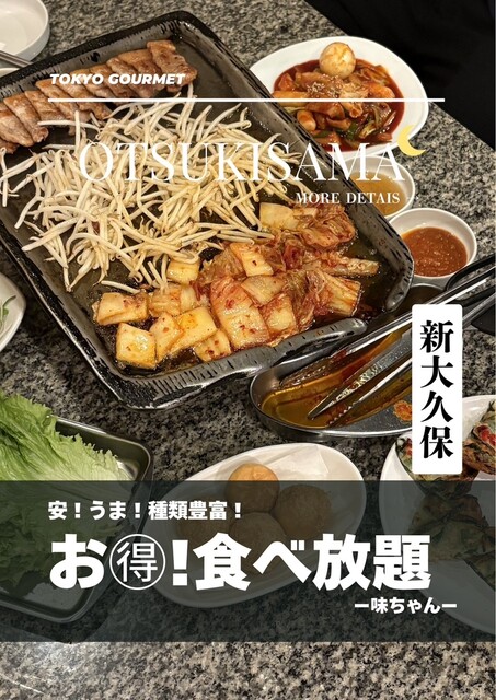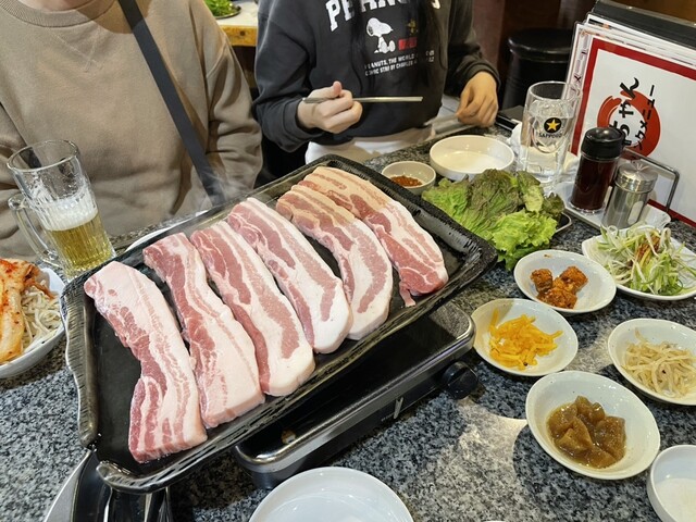 味ちゃんに行きました。サムギョプサルが人気のお店で、お肉は厚みがあってとてもジューシーでした。店員さんが焼いてくれるので、美味しいタイミングで食べられるのも嬉しいポイントです。キムチやチヂミなどの韓国...