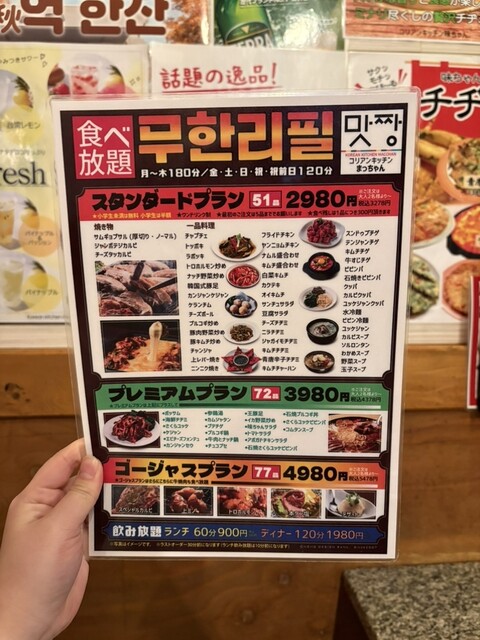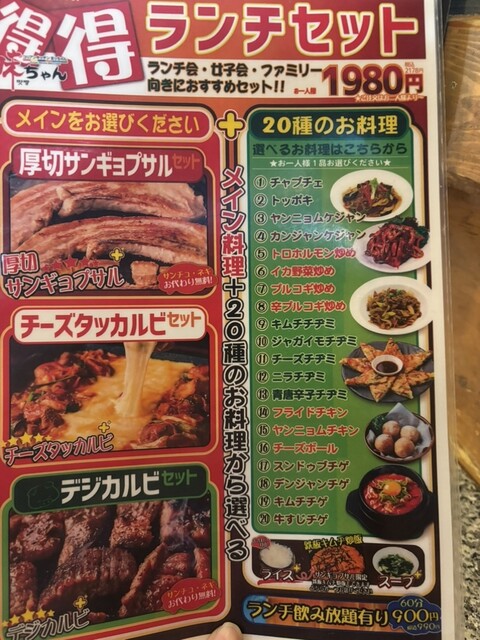 食べ放題のコースを注文しました。特にサムギョプサルはお肉がボリューミーでおいしかったです。他にもサラダの種類や、ナムル、キムチなど、お野菜もたくさんあったので、2時間の食べ放題コースでしたが、飽きるこ...