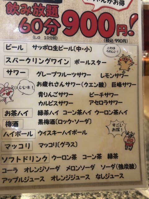 | ドリンク | 焼酎あり、ワインあり、カクテルあり |