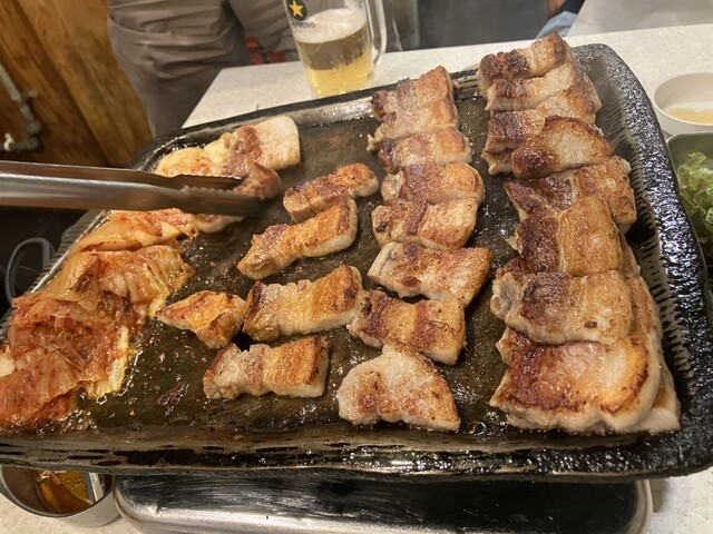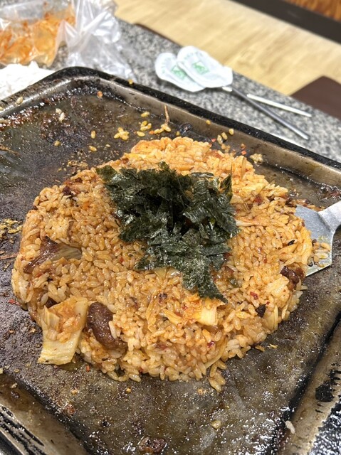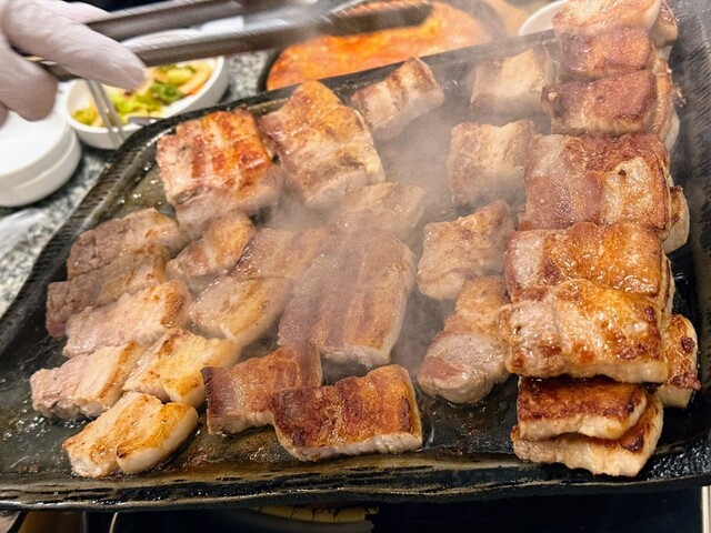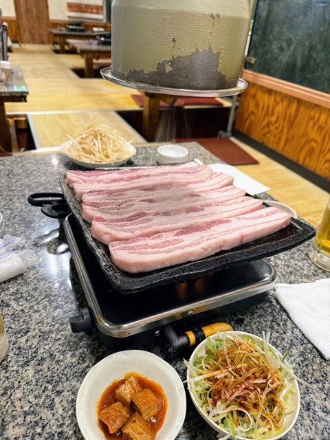 ランチ時に伺いました。厚切りサムギョプサルセットをオーダー。最高ですね。このセット。サムギョプサルに、チャプチェに、チヂミに、飲み物もお代わり自由って笑 これで1人1700円代。締めに、鉄板焼の炒飯を選択して完璧。韓国ランチ堪能したいならお勧めです。 詳細を見る