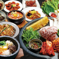 新大久保駅近の韓国料理店「プングムTAK」人気のサムギョプサルコース。サムギョプサルセットに、キムチ・ナムル盛り合わせ、ヤンニョムケジャン、カンジャンセウ、チャプチェ、海鮮チヂミ、スンドゥブチゲ、石焼ビビンバ、韓国伝統茶まで付いた満足ディナーです。