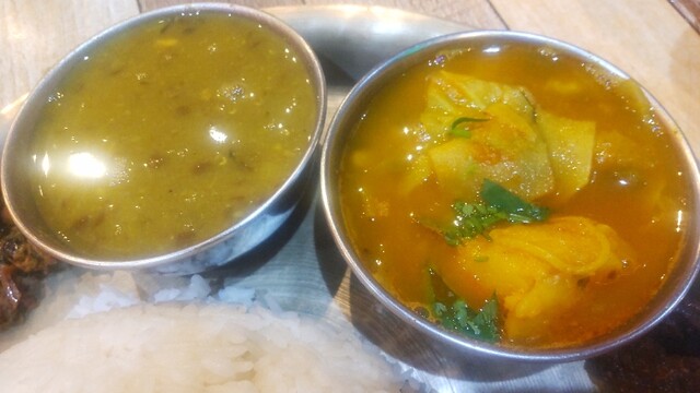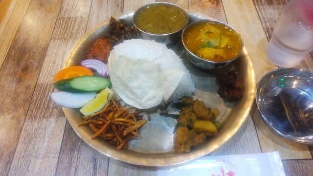 平日14時少し前に入店。この時間でもグループ客で賑やか。 2階にあると気付かなくて最初通り過ぎてしまった もうネパール料理店定番の、タカリセット的な「ネパールスペシャルセット」を注文。こちらは残念ながら選べるカレーは1つだけ。マトンで。 ランチドリンクは+400円とランチにしては高め。 ... 詳細を見る