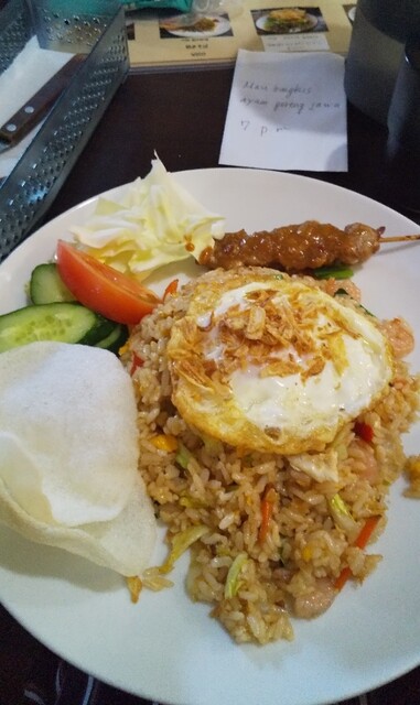 ナシゴレンです。ナシゴレンは、中国の炒飯が渡ってきたとされる料理で、調理も中華鍋で炒めま...