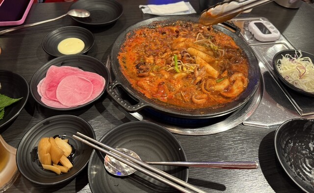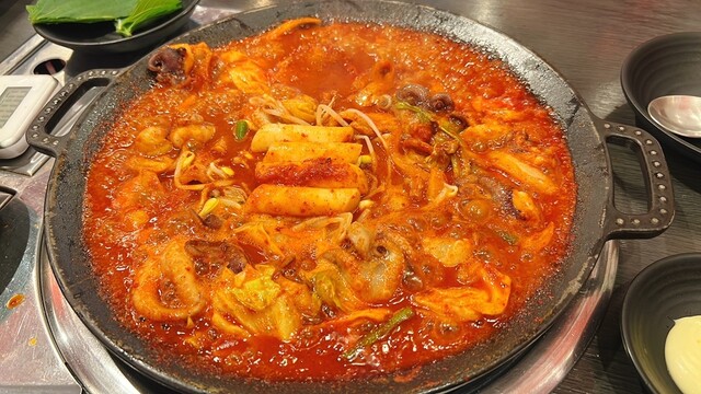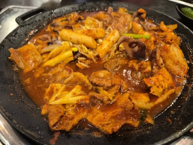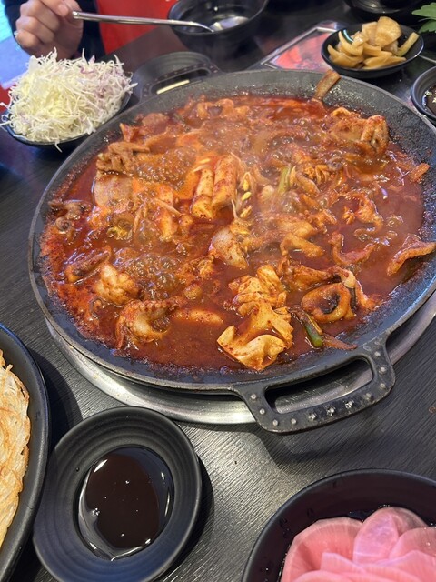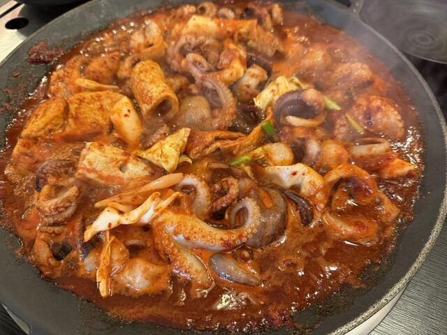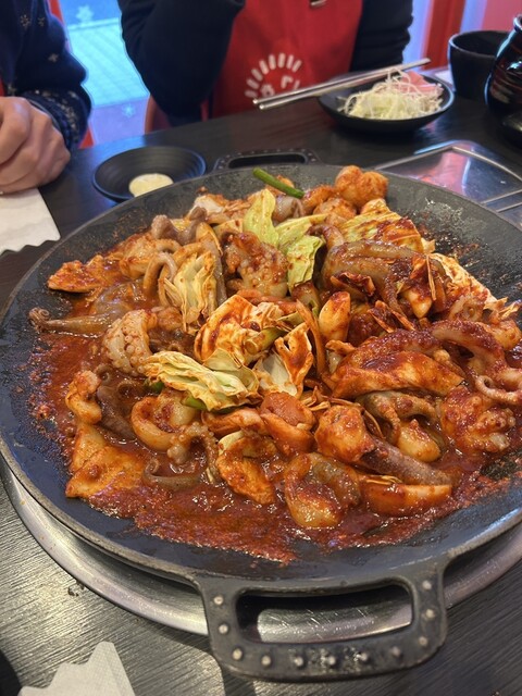 チュクミ激辛を友達と食べました。辛いと言いながら辛くないお店もあるけど、辛いの好きなら丁度良い辛さ。タコも歯応えあって最高。店は隣や後ろの人との距離が近くトイレに立つのはちょっと気をつかう広さです。駅...