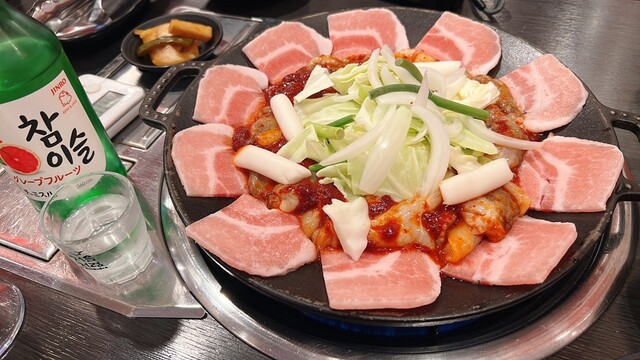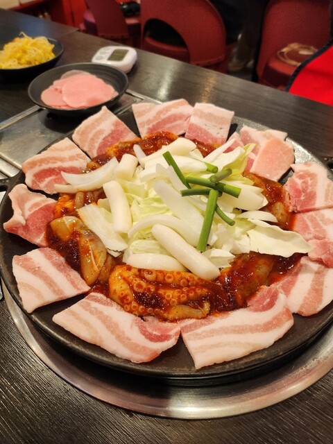 3人(爆食)で2人前のチュクミとサムギョプサルを頼みました。辛さはオリジナルをチョイス。友達は辛いと言っていましたが、辛党の...