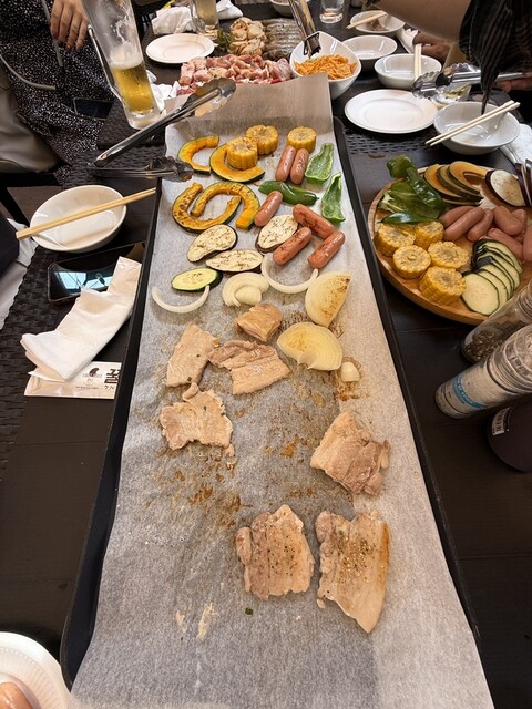 この日はこちらのお店でお食事です♪ 「 TERRACE GARDEN 8848 」 新大久保駅から5分弱のところにお店がありました。 今回はBBQビアガーデンがお目当てなので3階に当たる屋上になります。 広めのテーブル席で、BBQで予約している席には焼き台が設置されていました。 全14品付き豪華なビアガーデンBBQコースでお願いしました。 野菜や、お肉、海鮮など盛りだくさん! 自... 詳細を見る