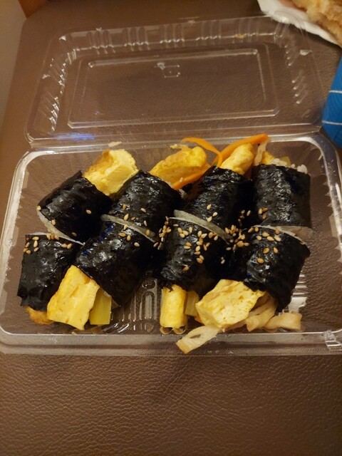 JR新大久保駅から大久保通りを東へ。 交差点の角地にテイクアウトのみ。 玉子焼きと人参とほうれん草かな。と たくわんみたいのと ご飯を韓国海苔でクルッと巻いたやつ。 それ... 詳細を見る