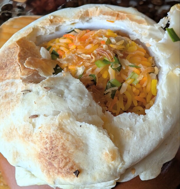 【名物】パン包みの壺焼きで作る、本物の"ビリヤニ"。