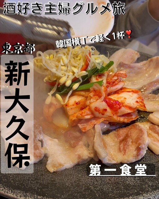 韓国グルメが大集結した新スポット『新大久保韓国横丁』が大久保通り沿いのメインストリートに誕生!その一角に構える【第一食堂】では、定番の「サムギョプサル」や自家製の「エビ餃子」「エビチーズ餃子」など、こだわりのコリアンフードが豊富です!マッコリ・チャミスル・ジョウンデーなど韓国のお酒をはじめ、ドリンクメニューも充実◎ショッピング帰りのお食事や女子会などにもお気軽にご利用ください♪