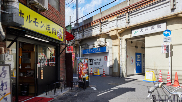 大久保駅北口改札を出て左側すぐ、徒歩3秒