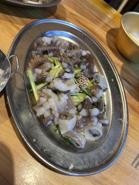 たこユッケの踊り食いに初挑戦!!食感も楽しく吸盤が唇の内側に吸い付くほど新鮮でした笑。他、チヂミや鍋の味も美味しかった!量もあったので、2人でシェアするにはお腹いっぱいになってしまったので、また別のも...