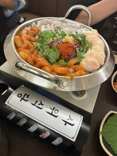 平日13時半頃は満席で14時頃入ることができました。ナッコップセ2人前と最後にボックンパを注文しました!エビはぷりぷりでホルモンもイカも美味しかったです。辛いものがそんなに得意ではないので甘口にしまし...
