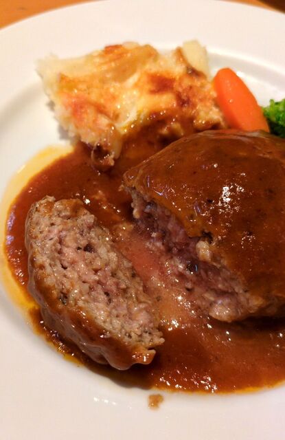 ハンバーグは肉汁が溢れ出て、旨みが凝縮されてます。ソースもクセがなく、美味しい。