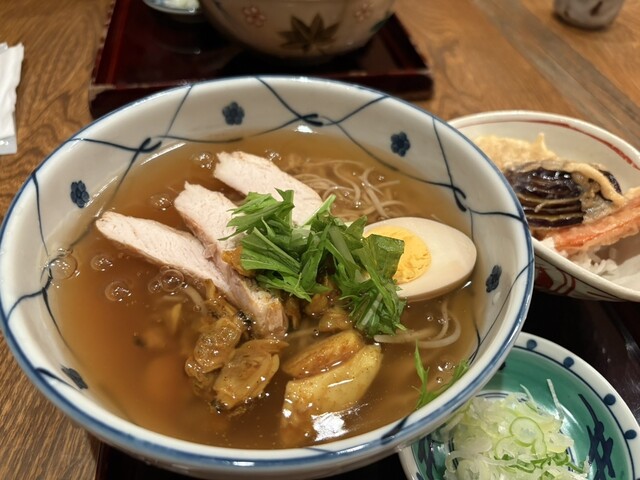 そば職人が打つ、本格手打ちそば・うどんのお店。こだわりのそば粉は、石臼自家製粉で全国各地の玄蕎麦を使用。水は日本名水百選の1つ、阿蘇白川水源の天然水を使い、化学調味料は一切使用しないという徹底したこだわり。豊かな香りと蕎麦本来のこし・喉ごしの良さ、そのしなやかさが人気の秘密です。またそば・うどんだけではなく、逸品メニューも豊富にあり。コース料理で一番人気の「天ぷらコース」には季節の変わり蕎麦...