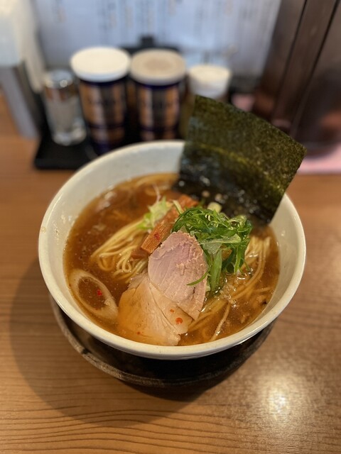 この日も仕事で池袋へ。 先日行かせていただいた麒麟さんの近くにある生粋さん。 当然こちらも店前をよく通っており気になっていましたが、タイミングよくこの日は行けました。 お昼時でしたが、ちょうど混みだす手前ですんなり入れました(^ ^) 正油そばと和え玉を購入。 席に着くと各メニュー... 詳細を見る