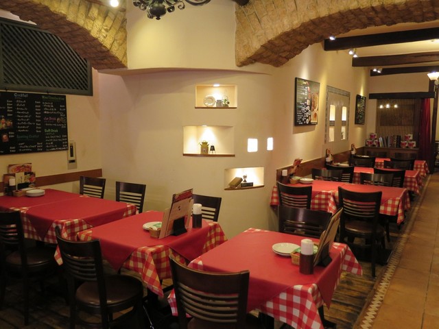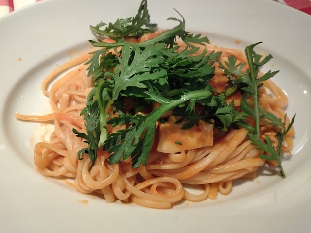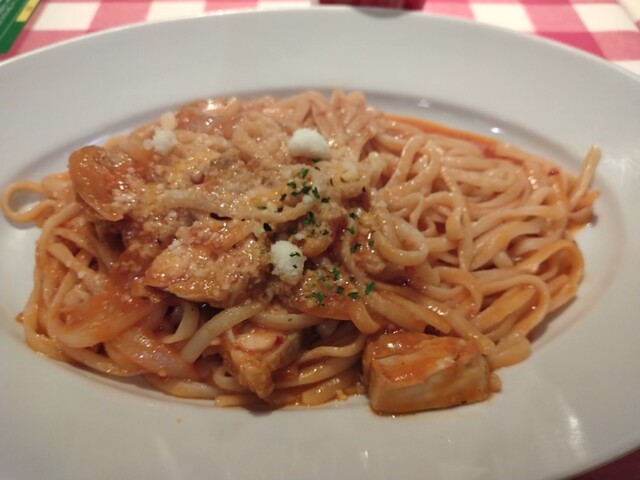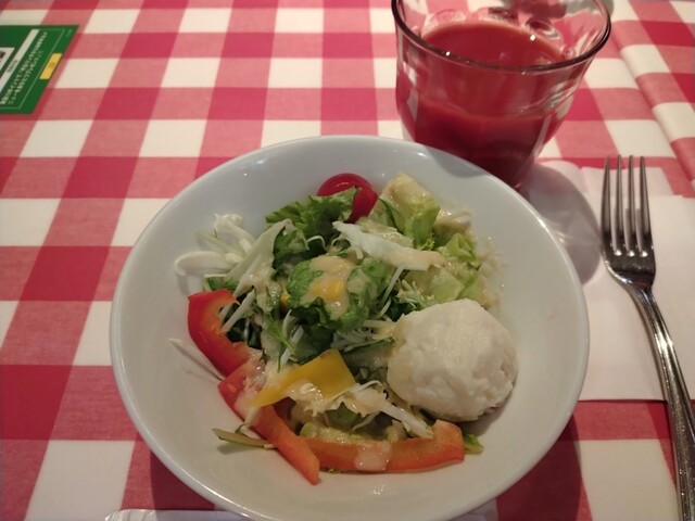 JR池袋駅から、東口に出て、そこから歩いて五分位の所にあります。11:30過ぎに到着。50席位の店内は既に半数くらいは席が埋まっていました。店内は赤が基調のカジュアルな雰囲気。女性客や1人客もが多いですね。南イタリアの料理と思っていたら、ナポリピッツァや他メニューも色々あるので、違うらしい。
